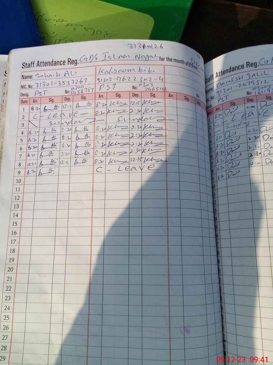 | CNIC | Full Name | Designation | R/C | Absence during last cal. month |