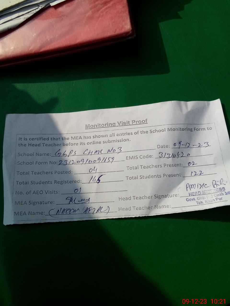 | EMIS Code: 31310420 | Name of School: GGPS CHAK 3/P | |||