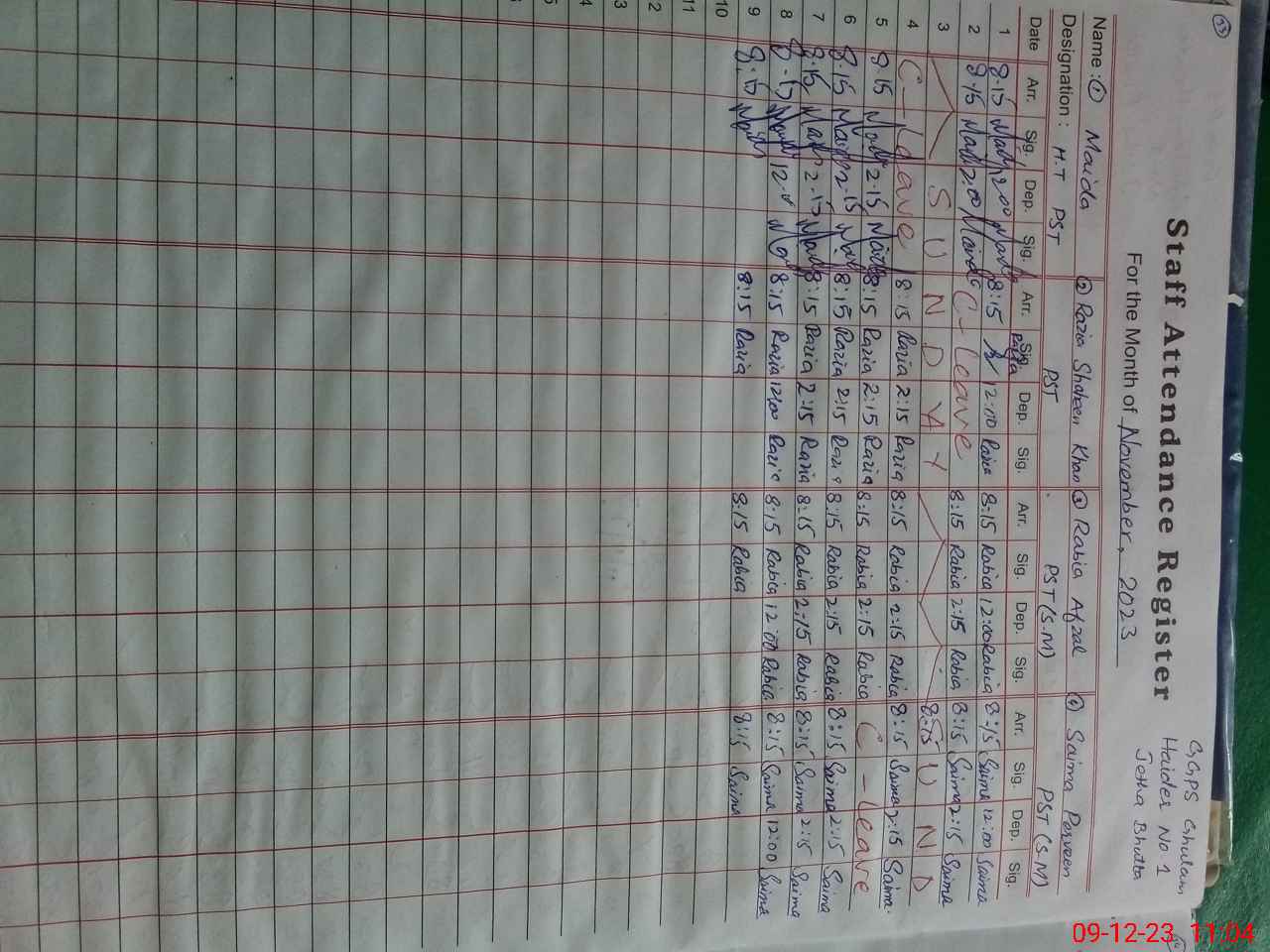 | CNIC | Full Name | Designation | R/C | Absence During Last Calender Month |