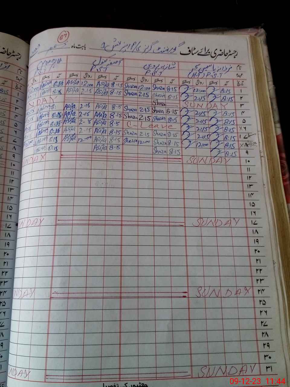 | CNIC | Full Name | Designation | R/C | Absence During Last Calender Month |