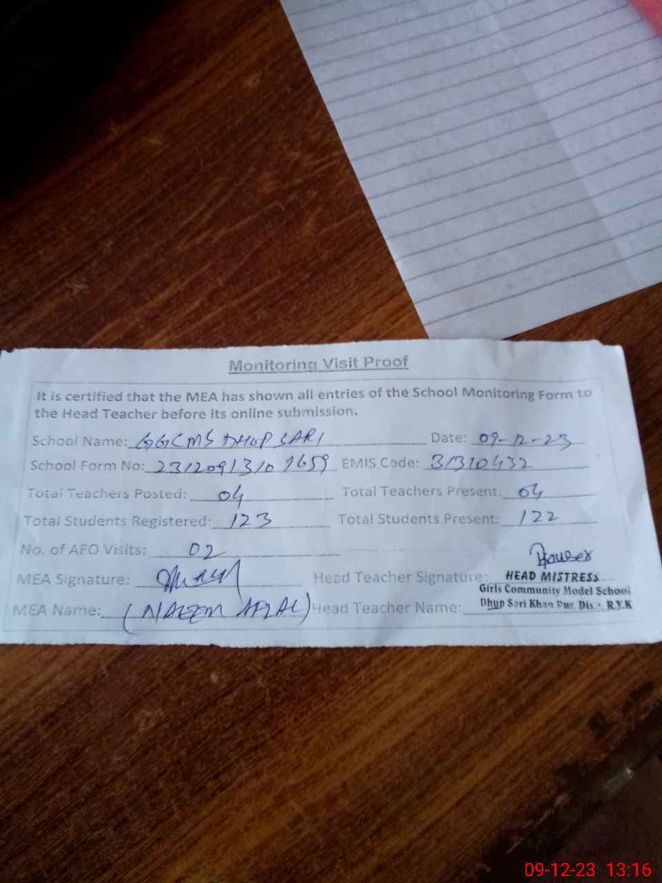 | EMIS Code: 31310432 | Name of School: GGCMS DHUPSARI | |||
