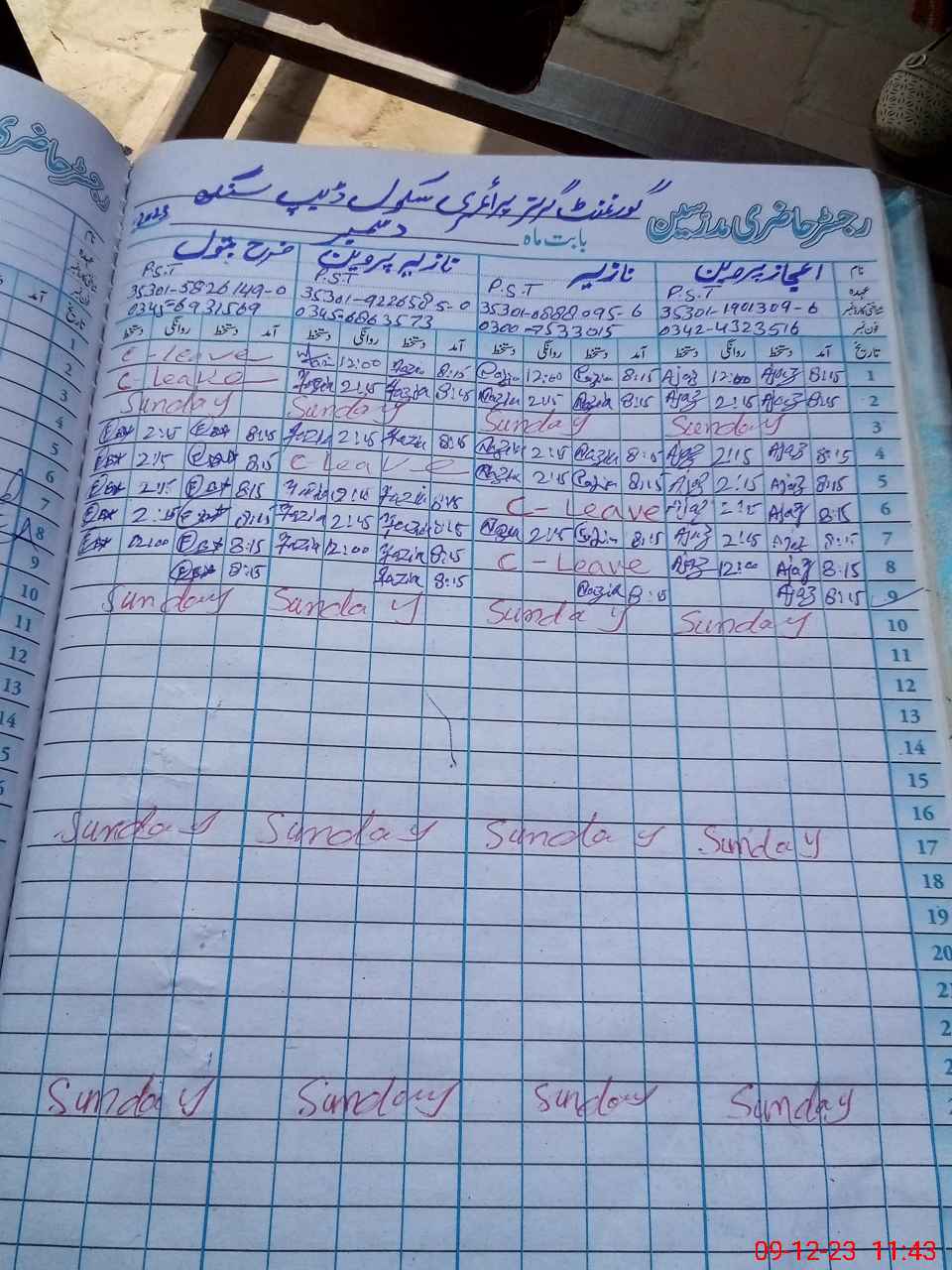 | CNIC | Full Name | Designation | R/C | Absence During Last Calender Month |