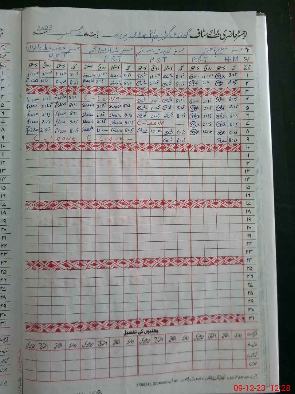 | CNIC | Full Name | Designation | R/C | Absence During Last Calender Month |
