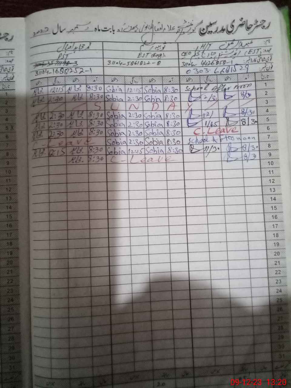 | Name: Mu**** Na**** Designation: (School Headmaster's/Headmistress's) PST Phone/Cell Number: 03**** |
