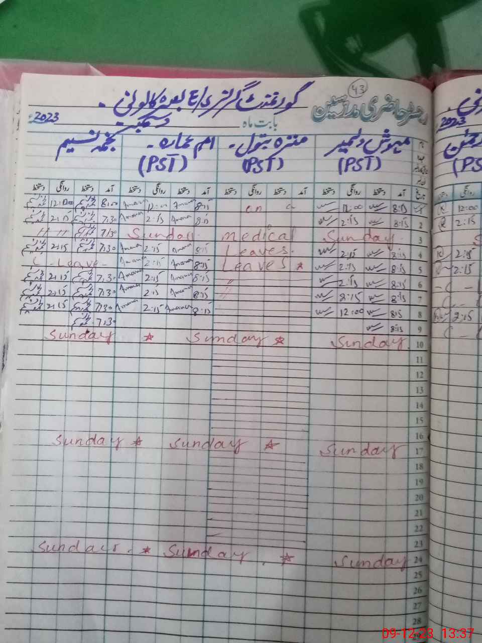 | Leave | Duty | Absent | Maternity | Medical | Ex- Pak |