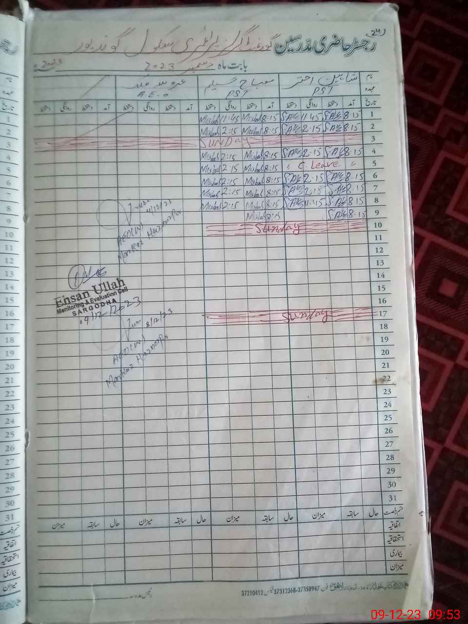 | Name: MI**** SA**** Designation: (School Headmaster's/Headmistress's) PST Phone/Cell Number: 03**** |