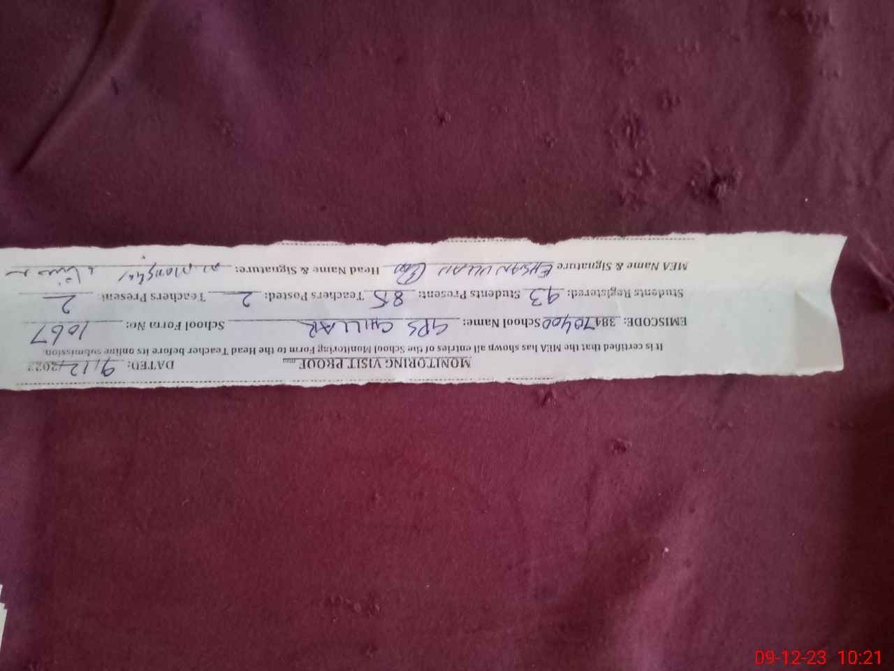 | Name: MU**** MA**** Designation: (School Headmaster's/Headmistress's) PTC/JV Phone/Cell Number: 03**** |