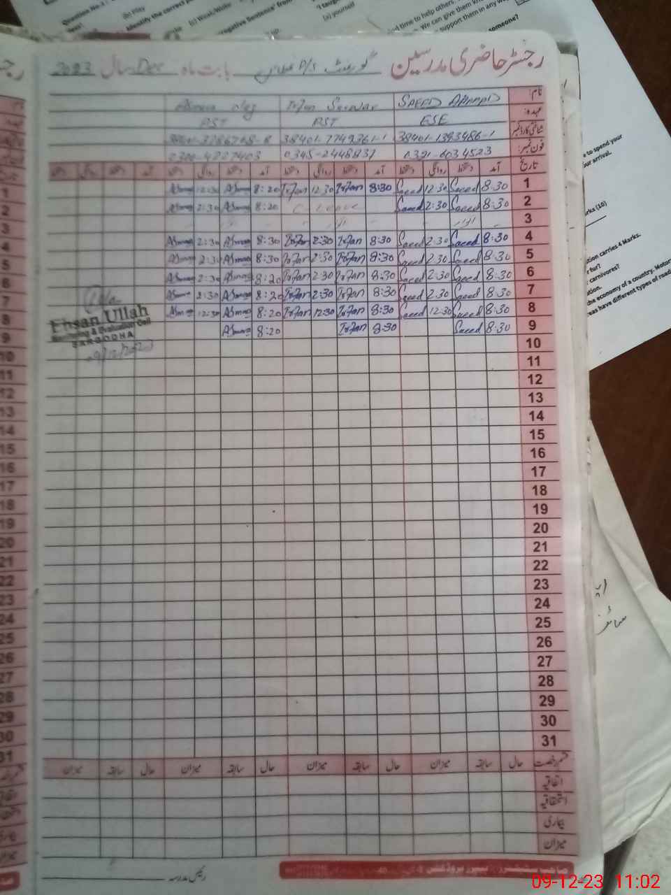 | Name: SA**** AH**** Designation: (School Headmaster's/Headmistress's) ESE Phone/Cell Number: 03**** |