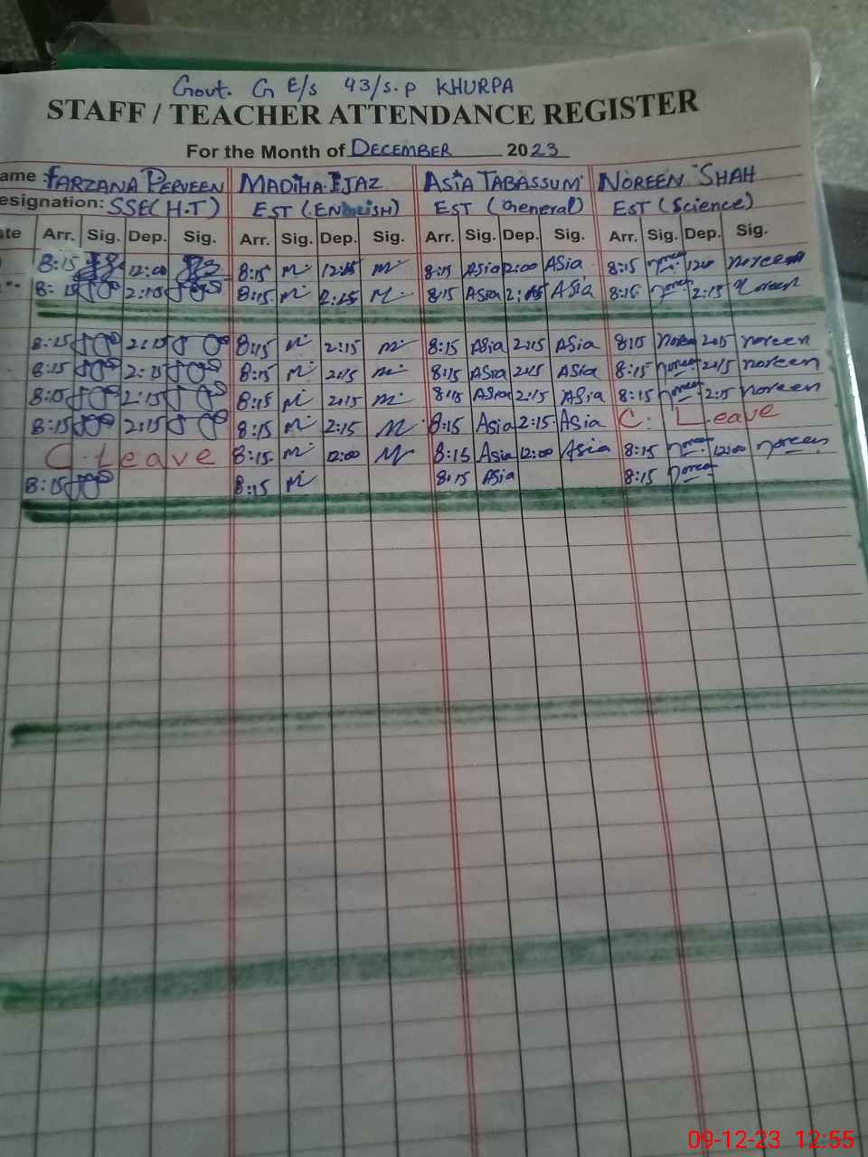| CNIC | Full Name | Designation | R/C | Absence During Last Calender Month |