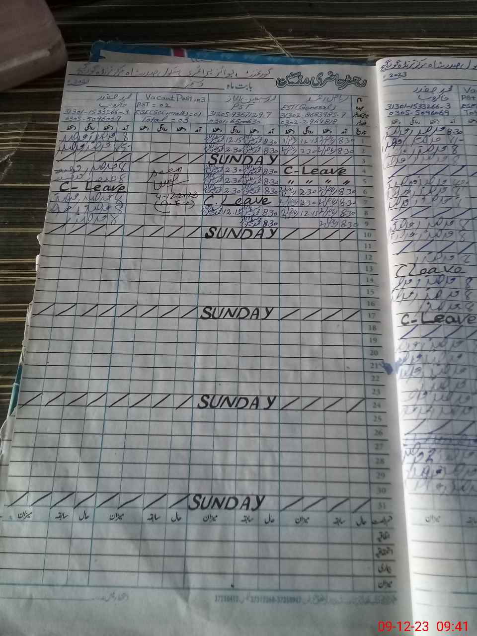 | CNIC | Full Name | Designation | R/C | Absence During Last Calender Month |