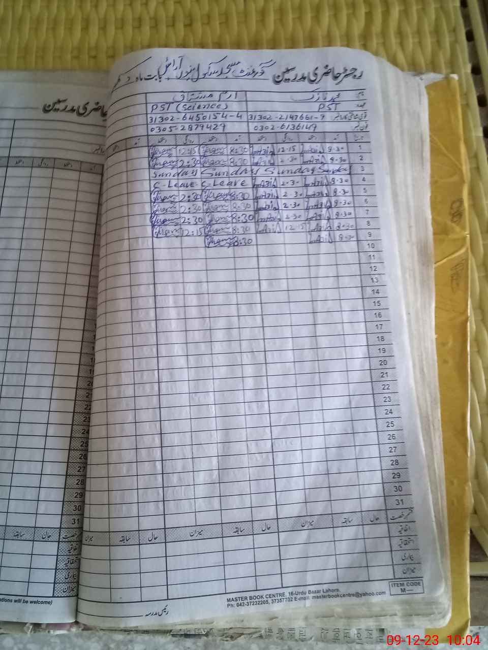 | Name: MU**** NA**** Designation: (School Headmaster's/Headmistress's) PST/PTC/JV Phone/Cell Number: 03**** |