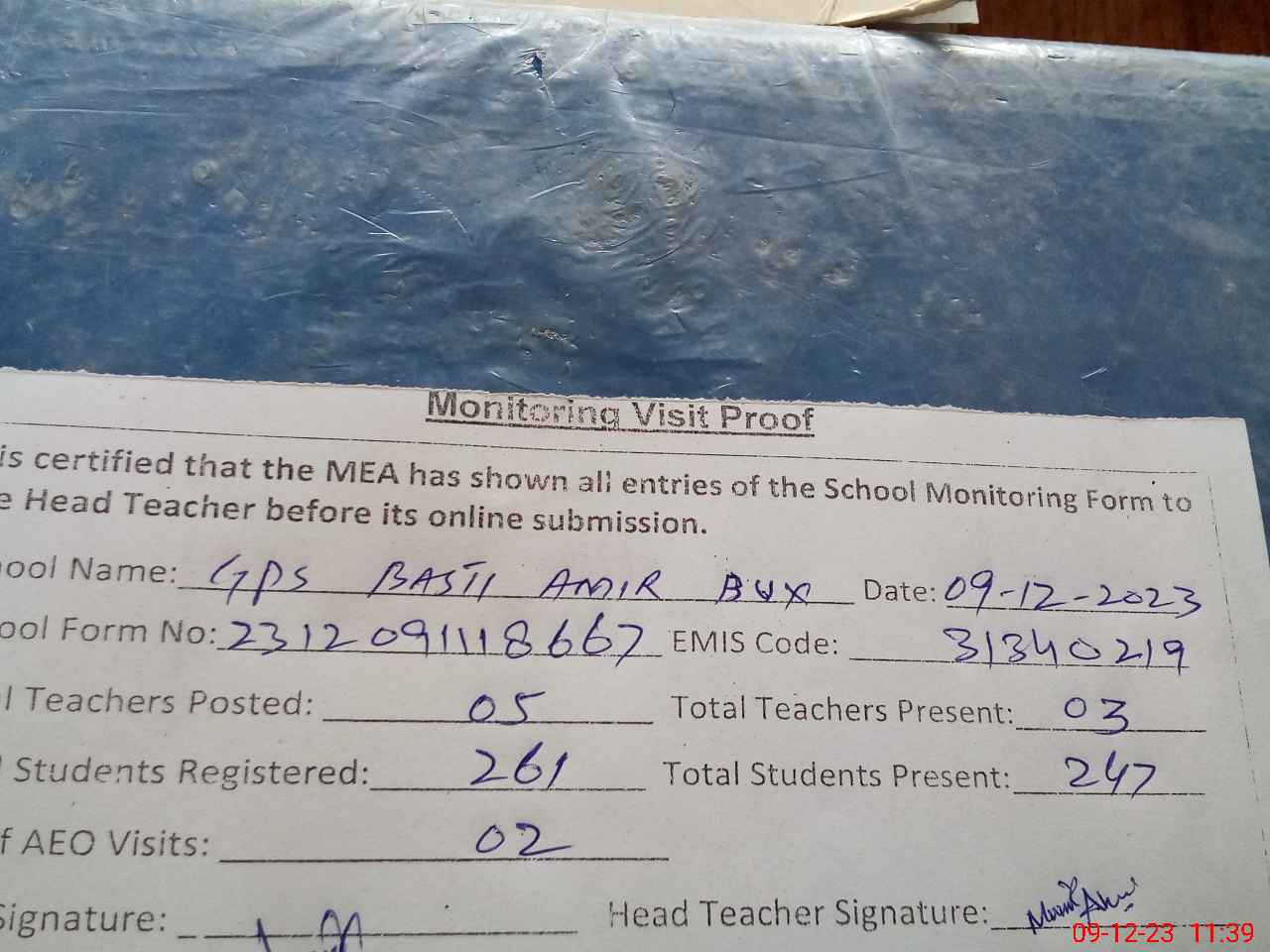 | EMIS Code: 31340219 | Name of School: GPS BASTI AMIR BUX | |||