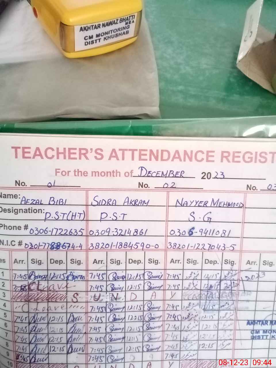 | Name: Af**** Bi**** Designation: (School Headmaster's/Headmistress's) Ese Sci Math Phone/Cell Number: 03**** |
