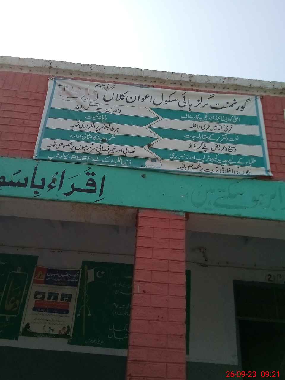 | EMIS Code: 39310120 | Name of School: GGHS AWAN KALAN | |||
