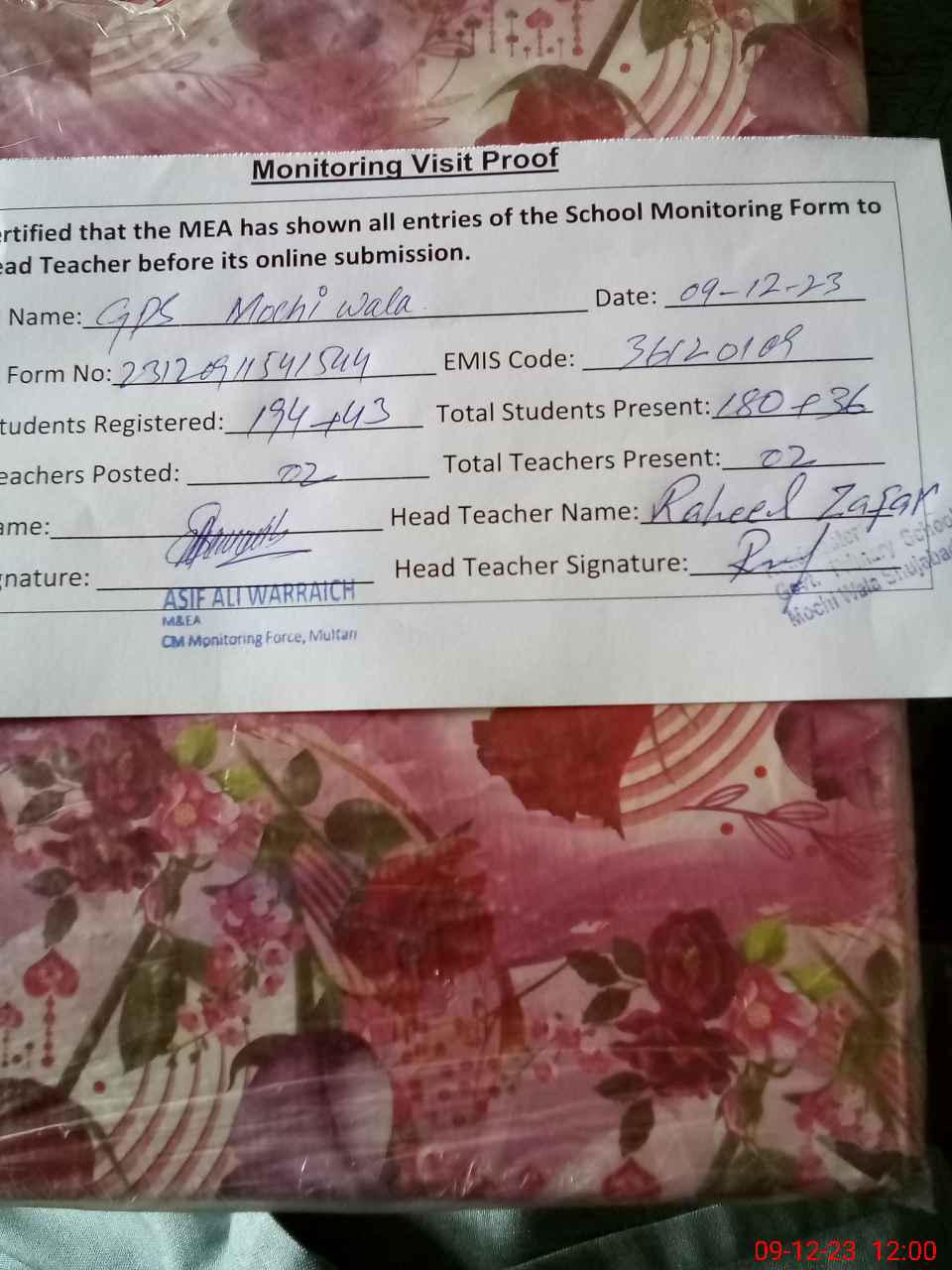 | EMIS Code: 36120109 | Name of School: GPS MOCHI WALA P/O OBAVARA SHUMALI | |||