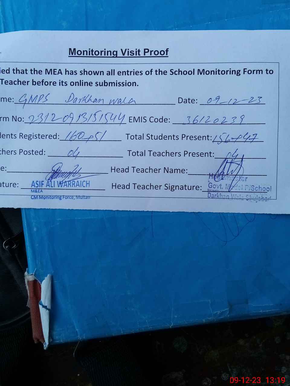 | EMIS Code: 36120239 | Name of School: GMPS DARKHAN WALA | |||