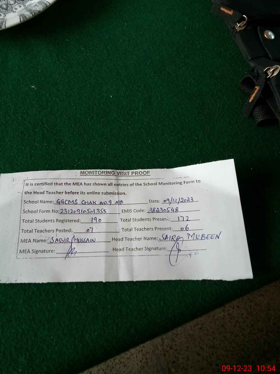 | EMIS Code: 38230548 | Name of School: GGCMS CHAK NO. 9 MB | |||