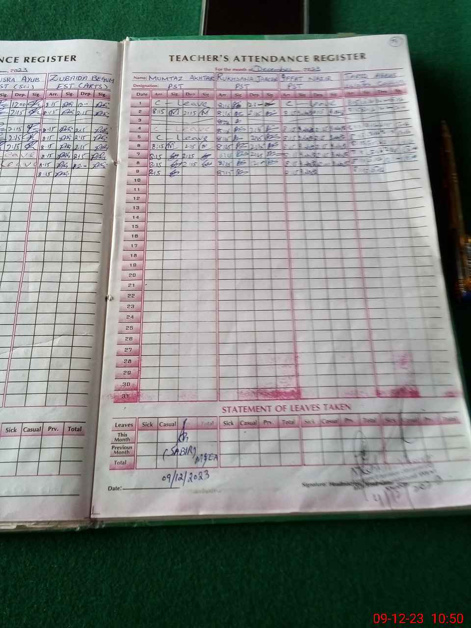 | CNIC | Full Name | Designation | R/C | Absence During Last Calender Month |