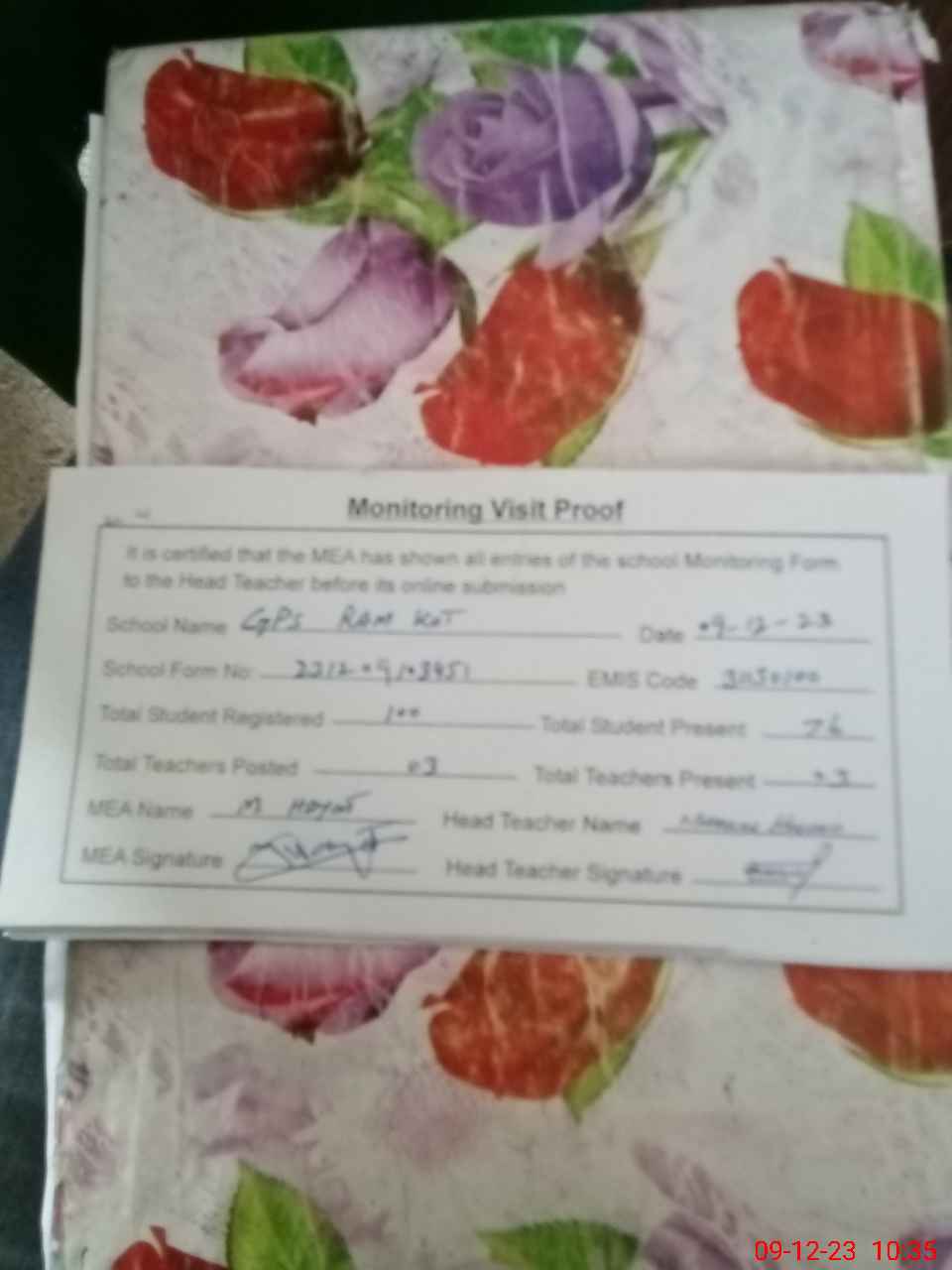 | EMIS Code: 31150100 | Name of School: GPS RAMKOT | |||