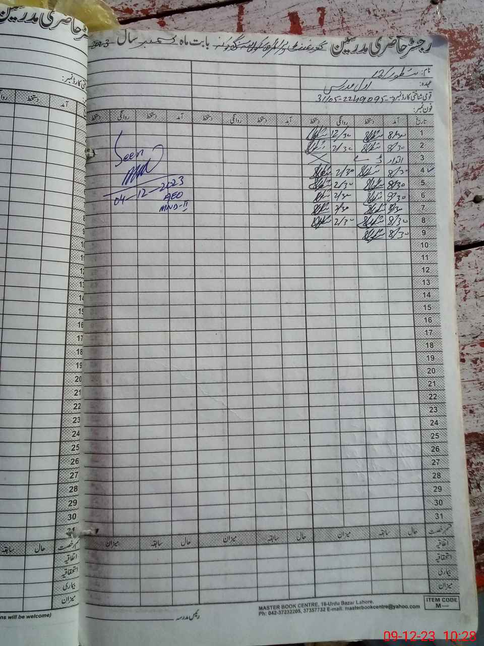 | CNIC | Full Name | Designation | R/C | Absence During Last Calender Month |