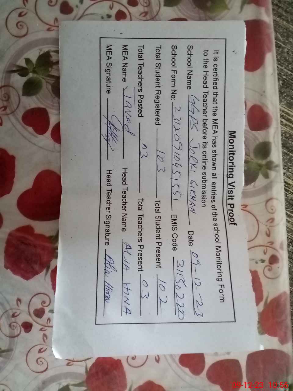 | EMIS Code: 31150220 | Name of School: GGPS JORRI SIKKHON | |||