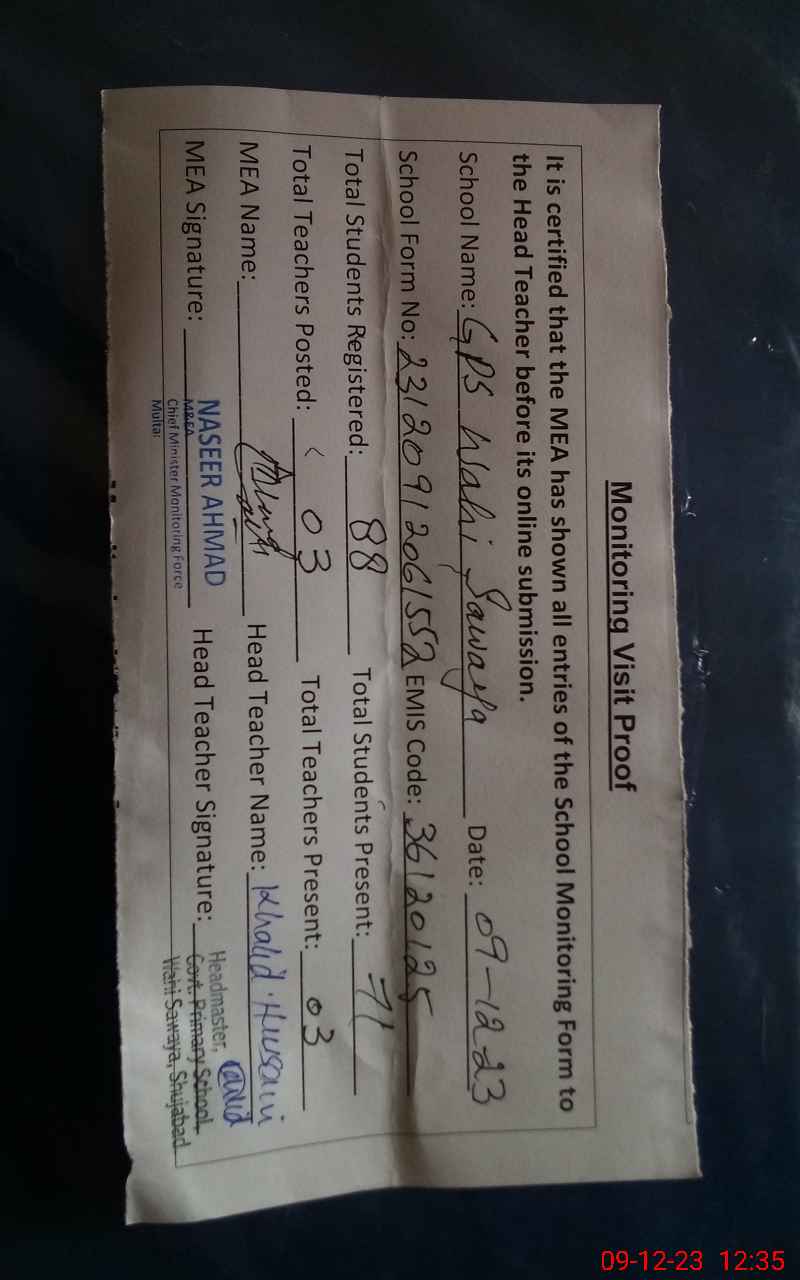 | EMIS Code: 36120125 | Name of School: GPS WAHI SAWAYA P/O RAJARAM SHUJA ABAD | |||