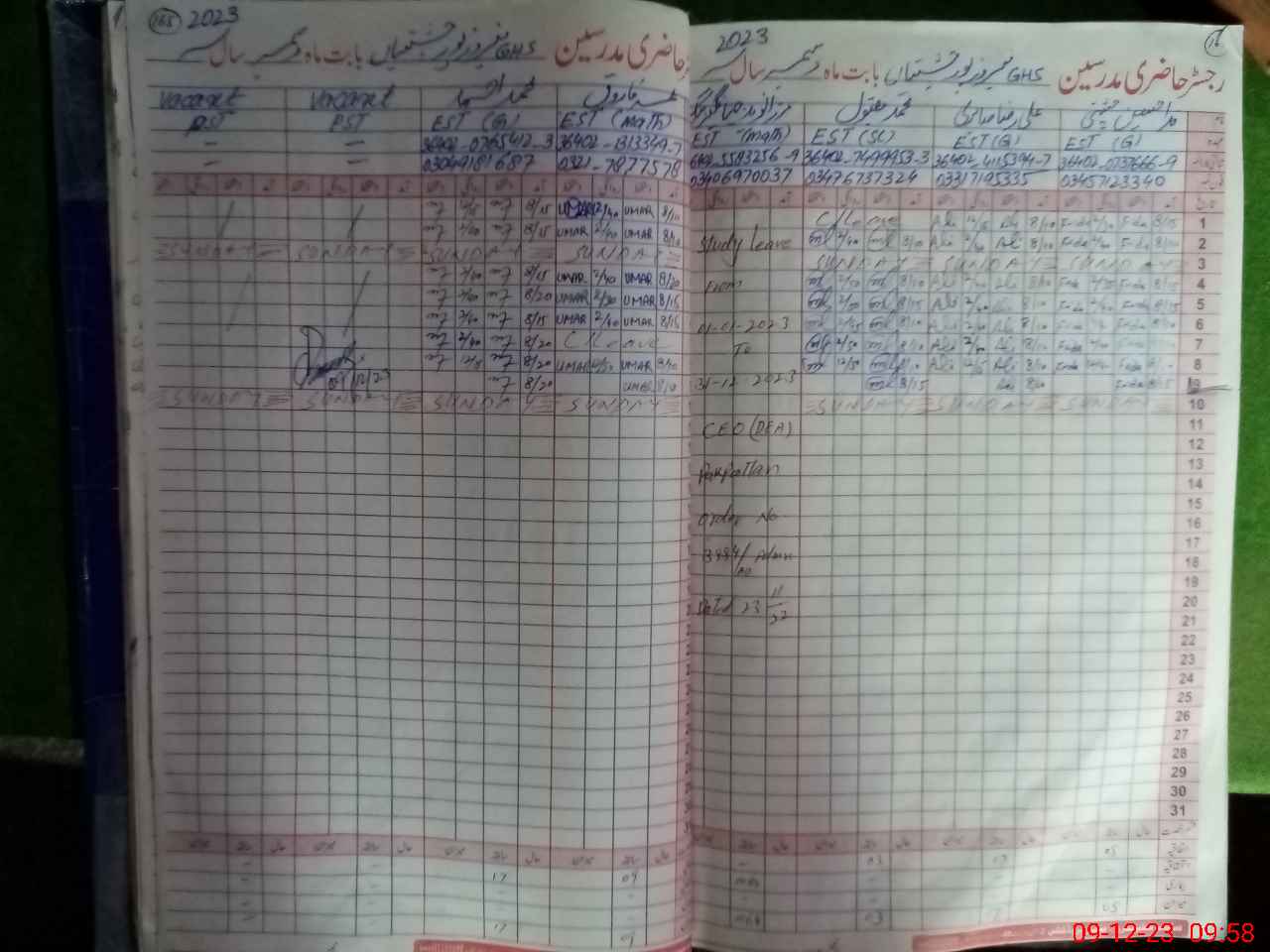 | CNIC | Full Name | Designation | R/C | Absence During Last Calender Month |