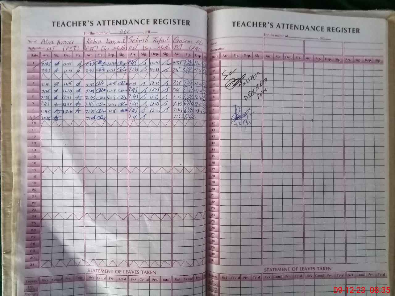 | Name: AS**** AN**** Designation: (School Headmaster's/Headmistress's) PST Phone/Cell Number: 03**** |