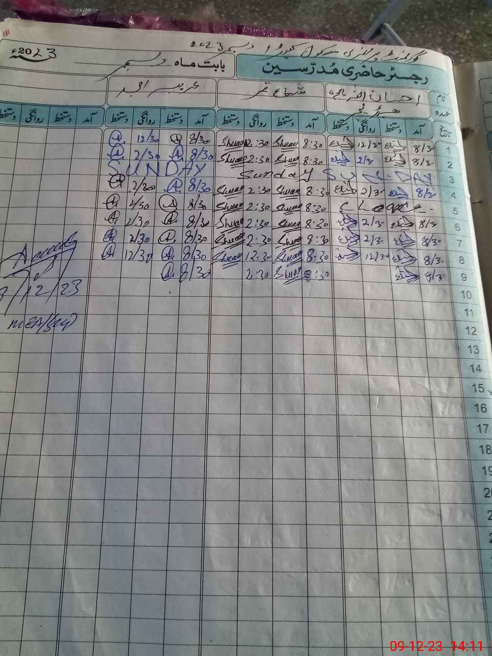 | 35**** | Mu**** Hu**** | 2 | 0 | 0 | 30 | 0 | 0 | 0 | 0 | 0 | 0 | Absent (Un-Authorized) | |