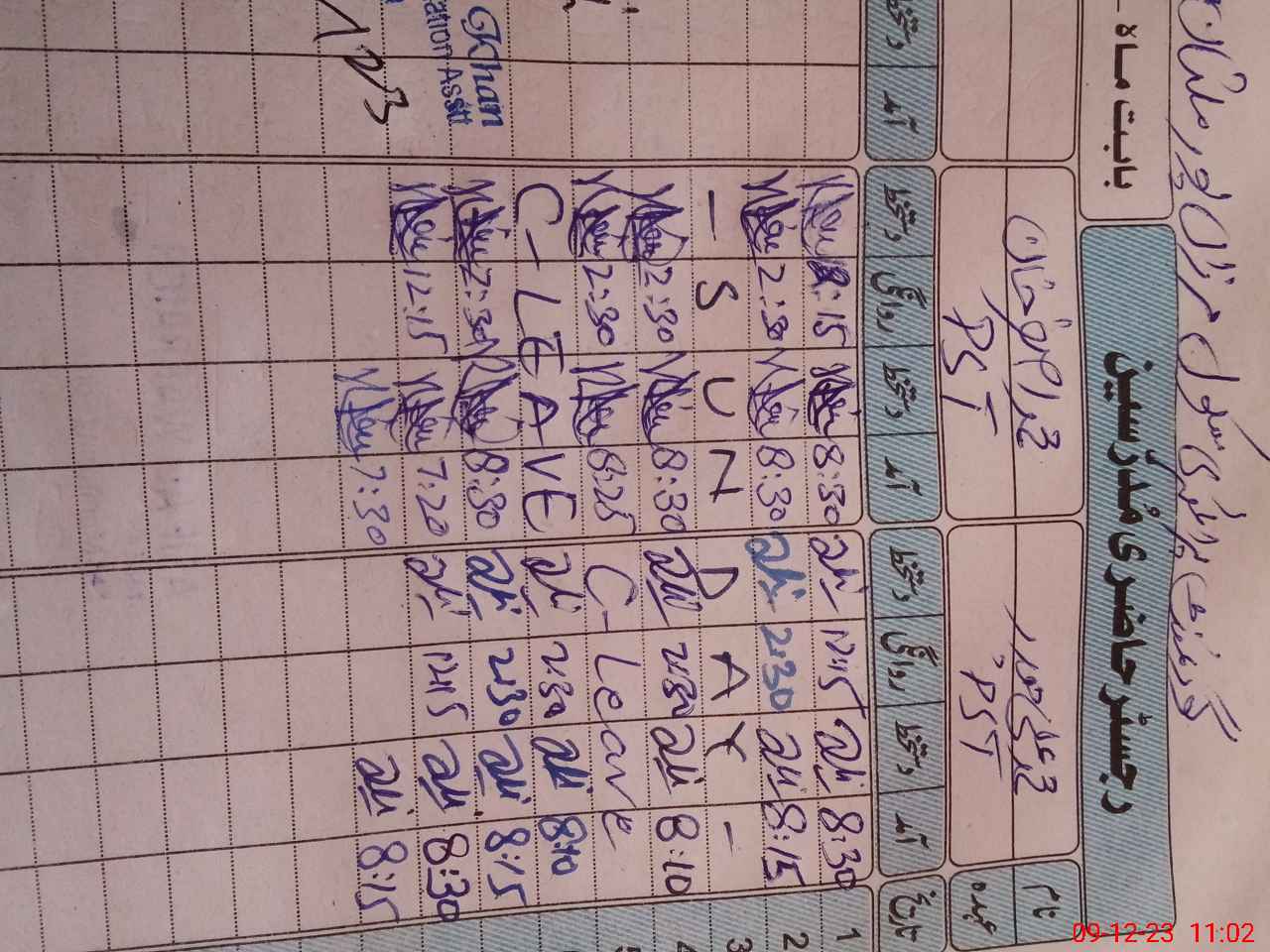 | CNIC | Full Name | Designation | R/C | Absence During Last Calender Month |