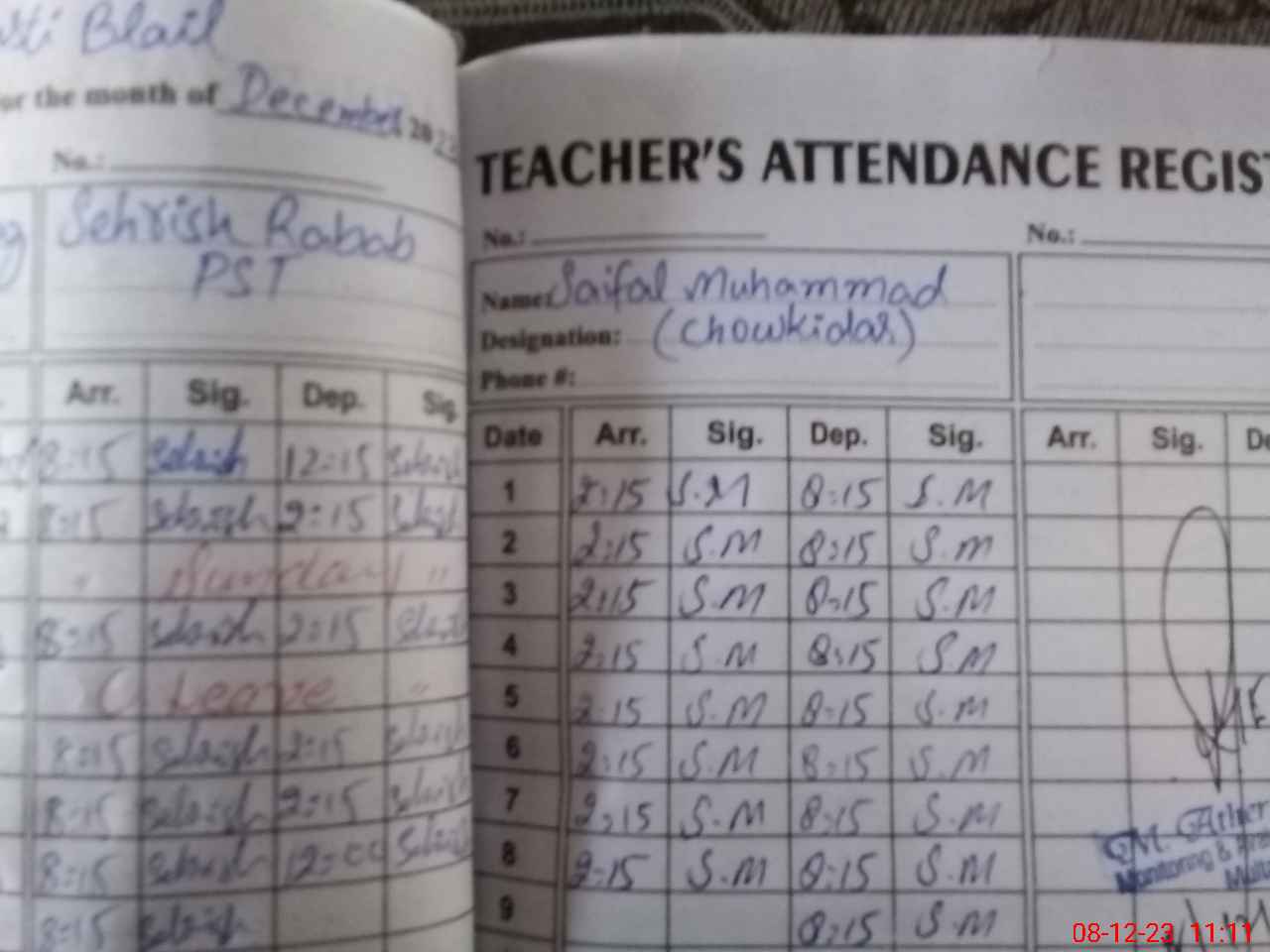 | Monitoring Date: 08-12-2023 | Start Time: 08-12-2023 11:09 AM | End Time: 08-12-2023 11:51 AM | Name of MEA: MU**** AT**** KH**** | |