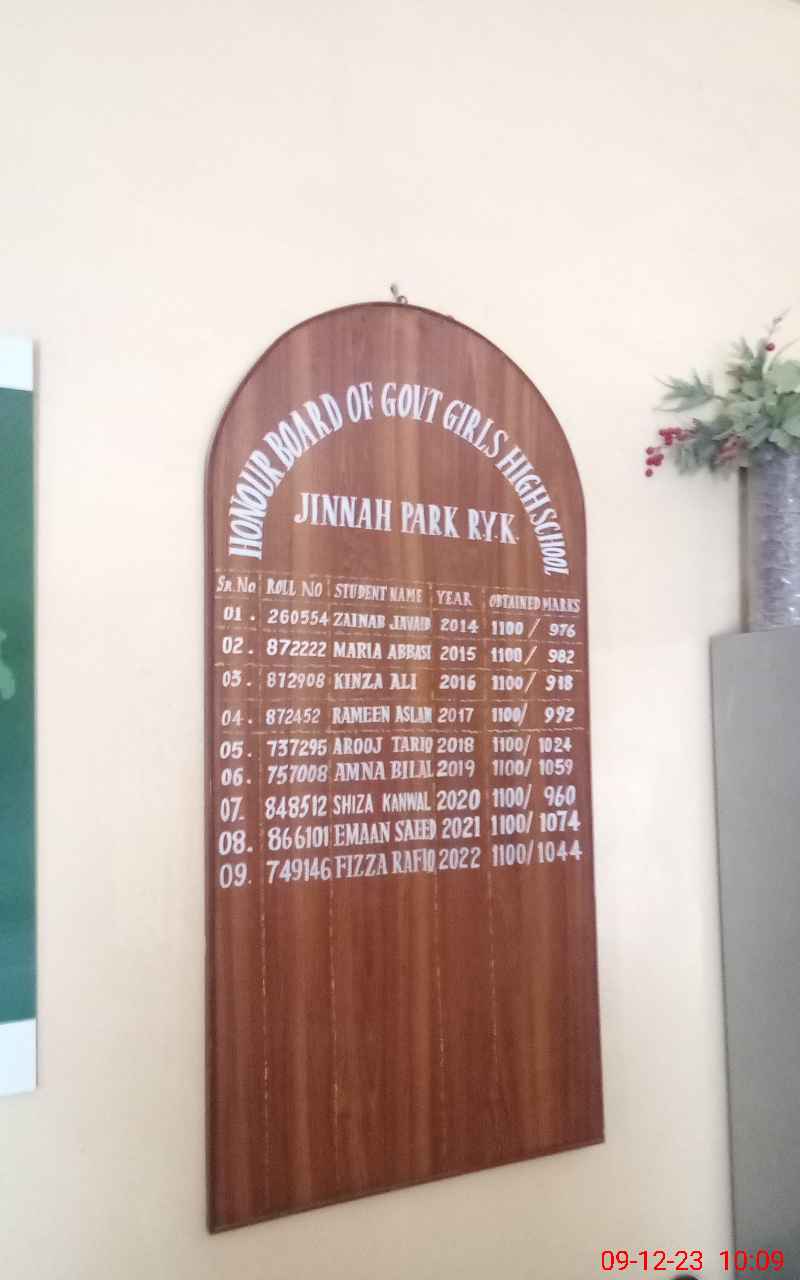 | EMIS Code: 31330123 | Name of School: GGHS JINNAH PARK R.Y. KHAN | |||