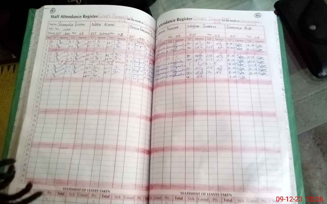 | CNIC | Full Name | Designation | R/C | Absence During Last Calender Month |
