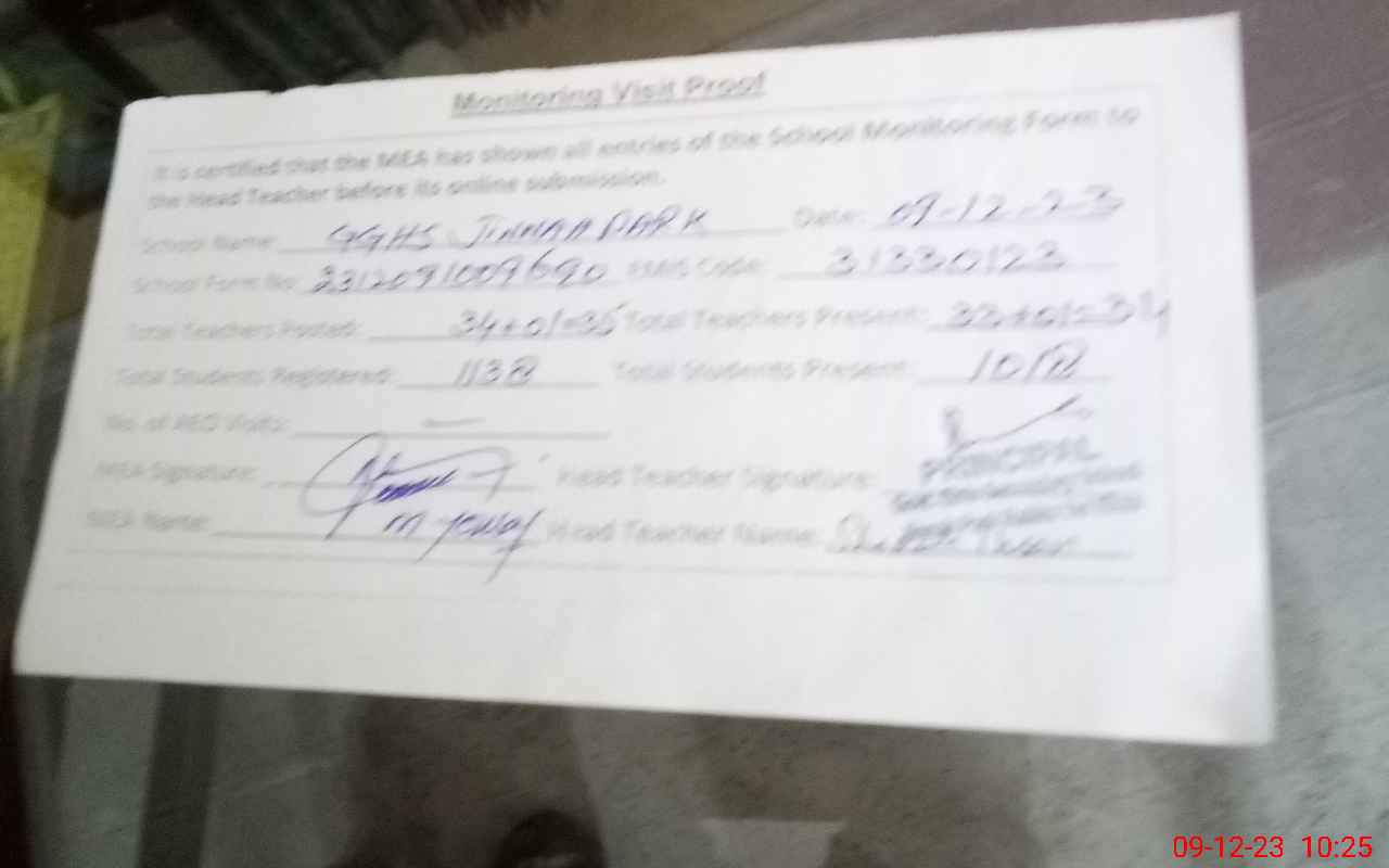 | Attendance Register | Head Teacher | MEA with School | Visit Proof |