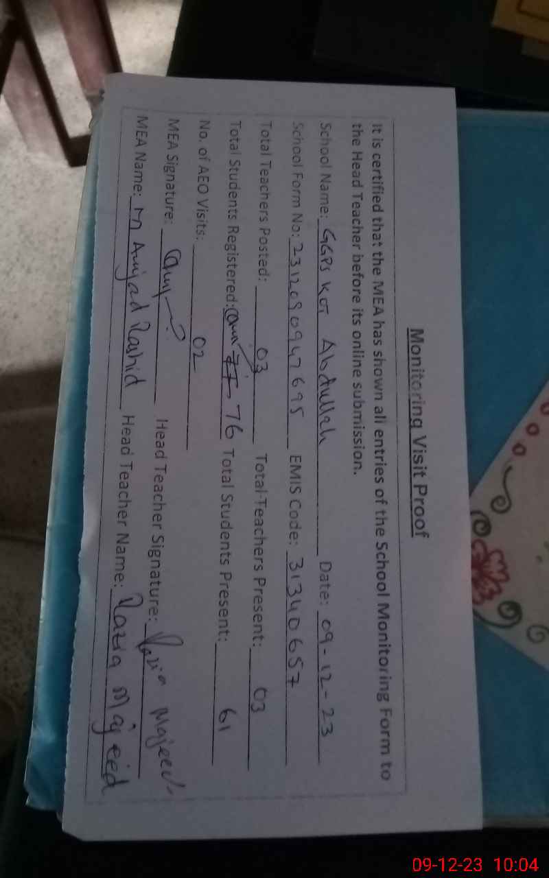| EMIS Code: 31340657 | Name of School: GGPS KOT ABDULLAH | |||