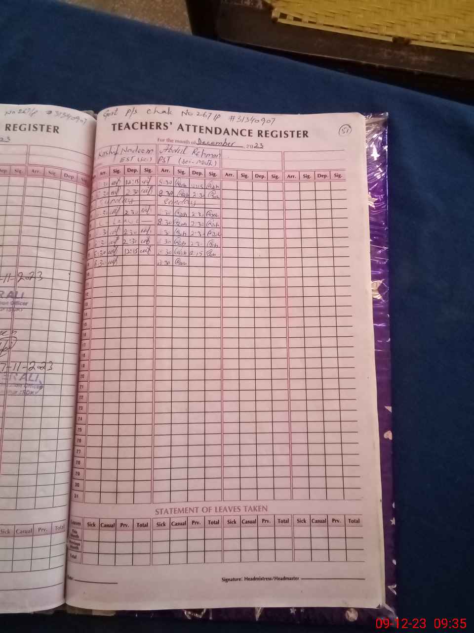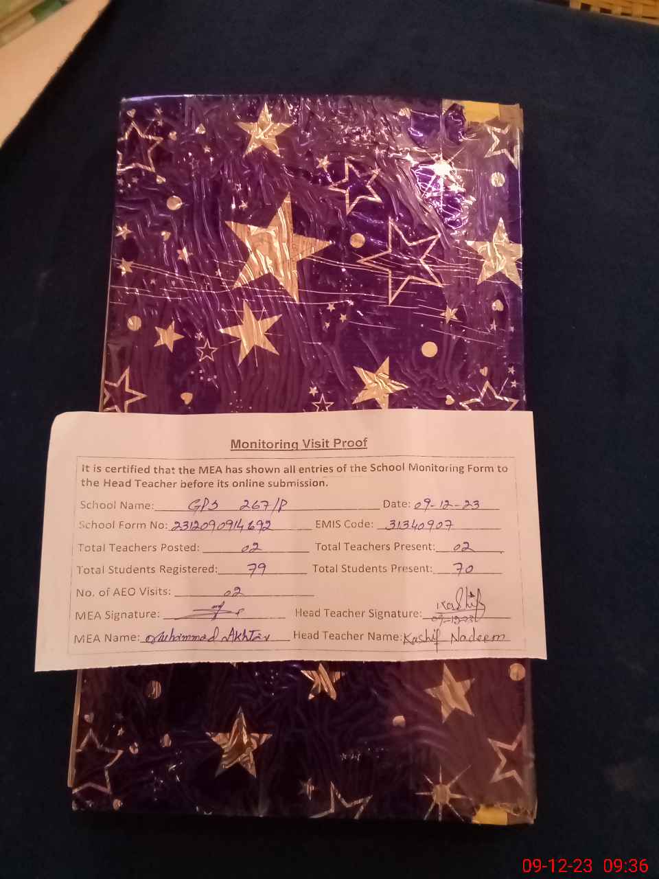 | Attendance Register | Head Teacher | MEA with School | Visit Proof |