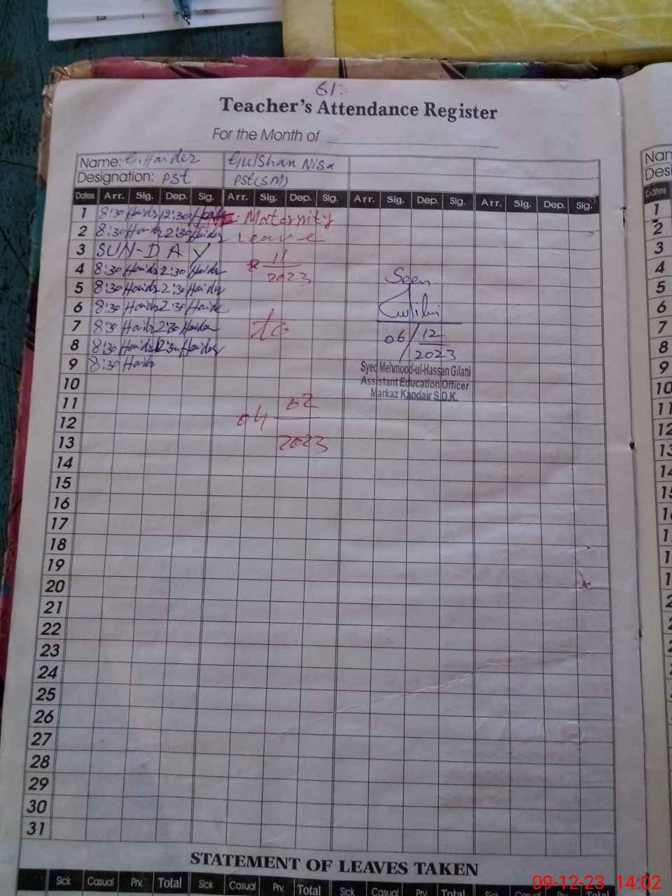 | Name: GH**** HA**** Designation: (School Headmaster's/Headmistress's) PST Phone/Cell Number: 03**** |