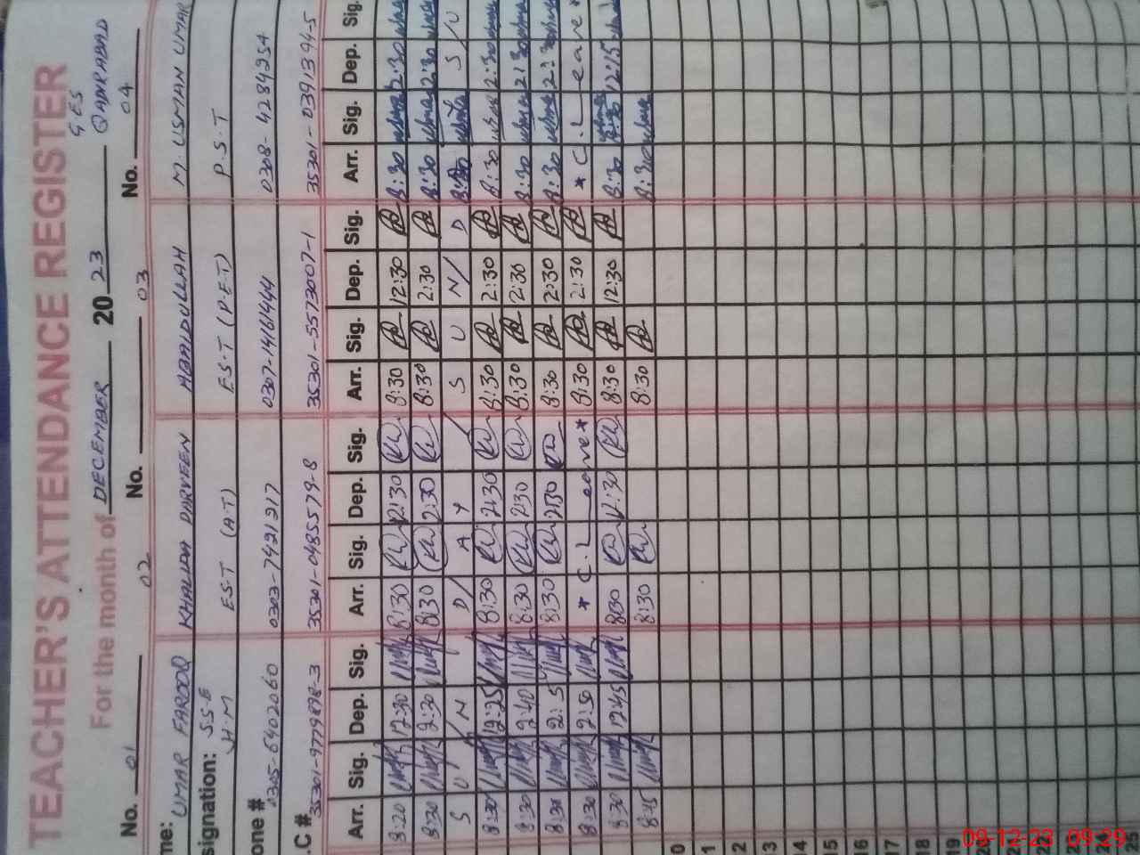 | Name: Um**** Fa**** Designation: (School Headmaster's/Headmistress's) SSE Phone/Cell Number: 03**** |