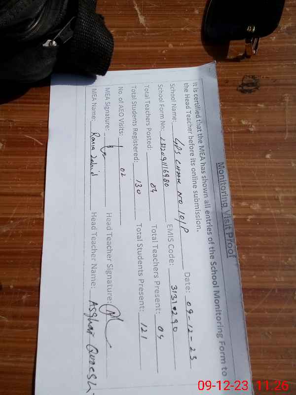 | EMIS Code: 31310290 | Name of School: GPS CHAK NO.10/P | |||