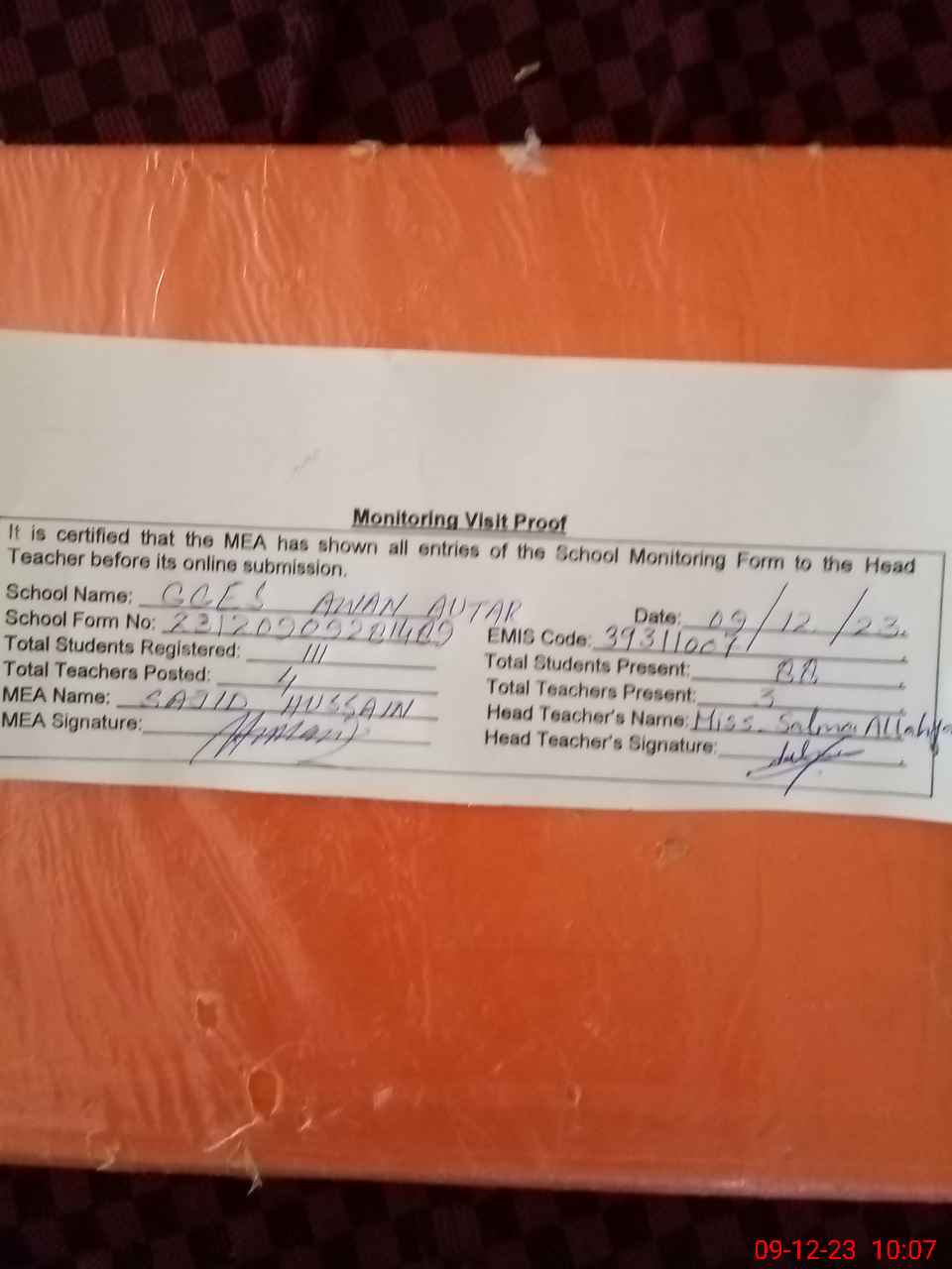 | Certified that this School was Inspected by the Undersigned MEA/DMO Today and the Information Stated Above is as Per Record. | |||||