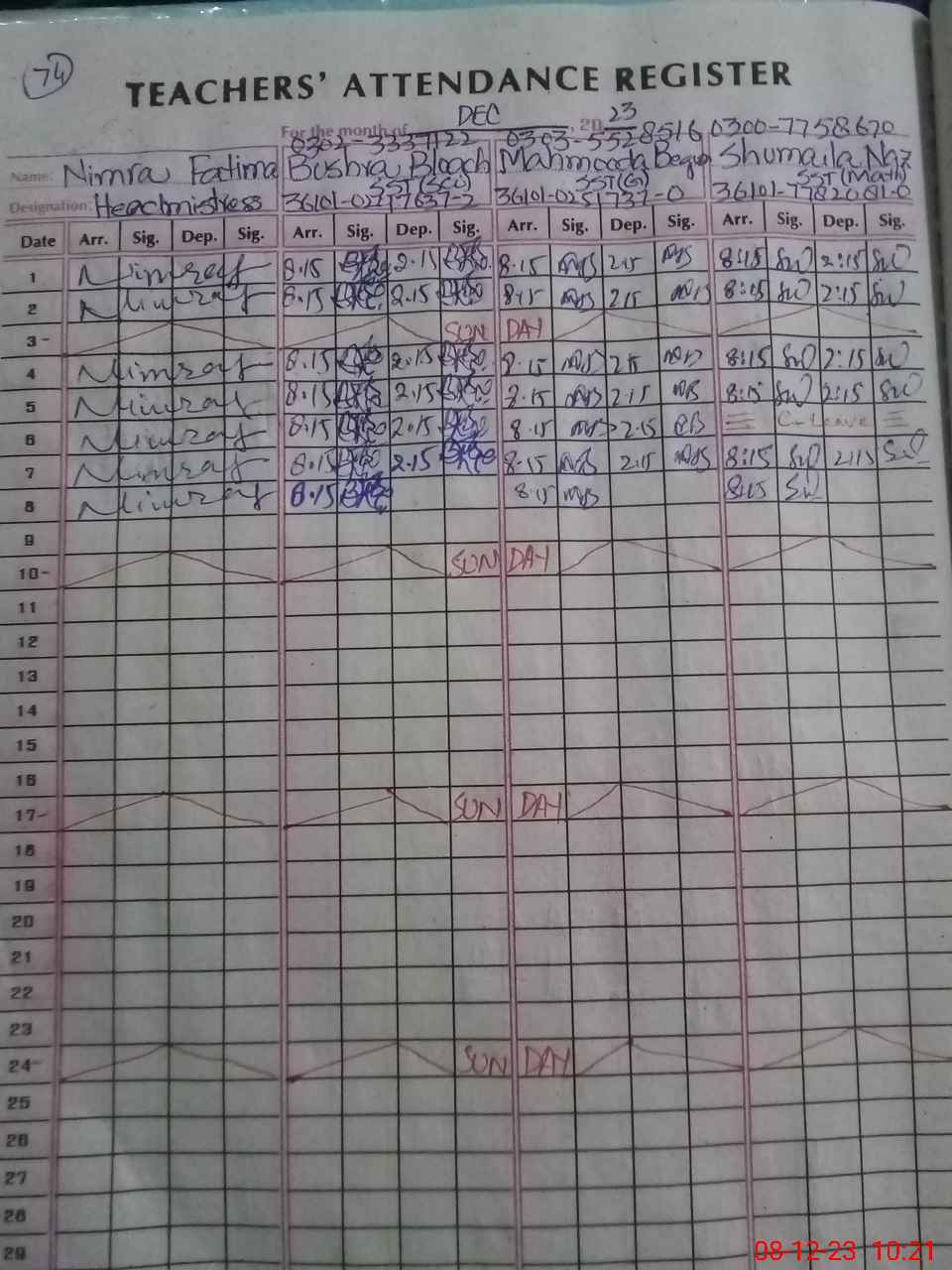 | CNIC | Full Name | Designation | R/C | Absence During Last Calender Month |