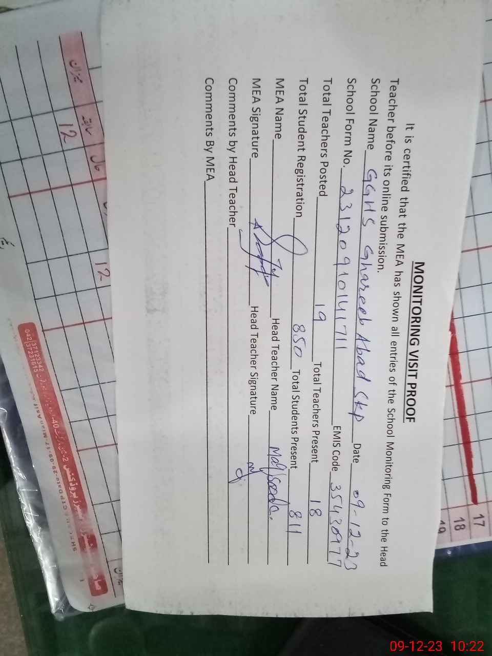 | EMIS Code: 35430977 | Name of School: GGHS MODEL GHAREEB ABAD | |||