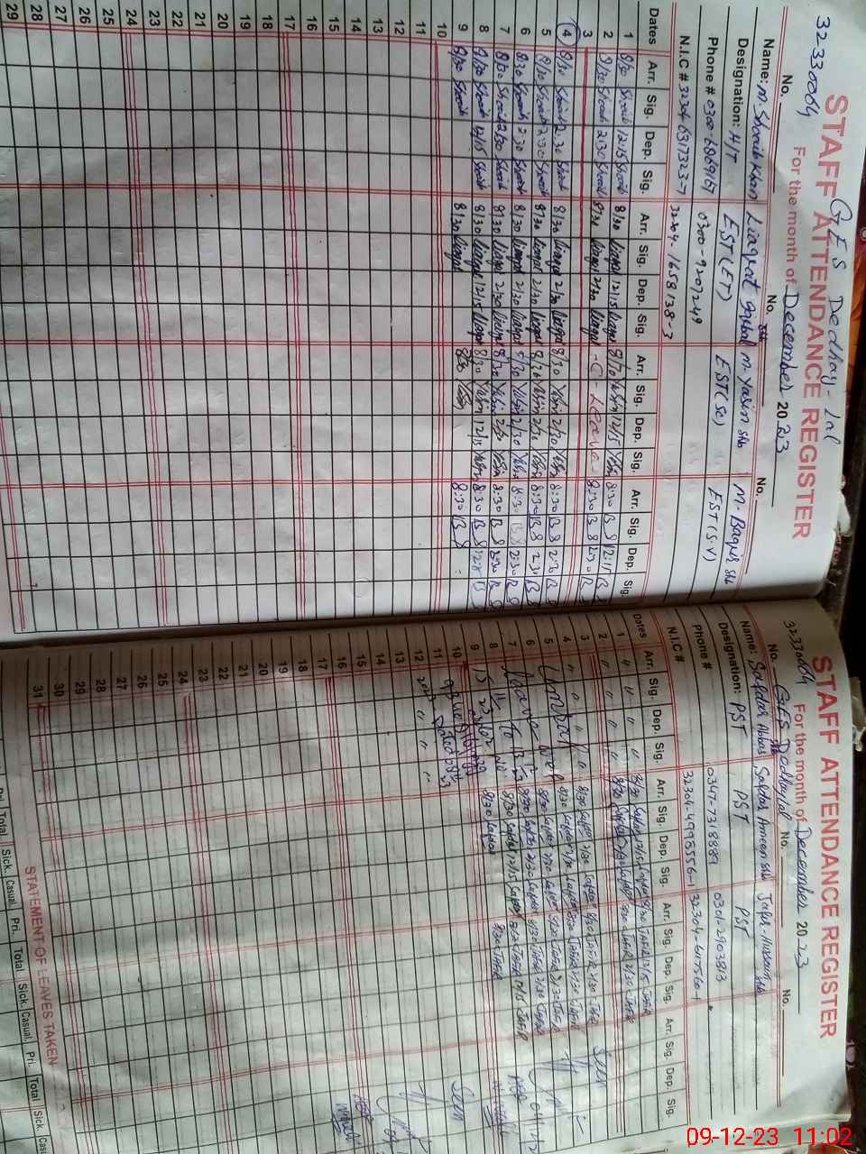 | Name: Mu**** Sh**** Kh**** Designation: (School Headmaster's/Headmistress's) S.S.T.(GEN) Phone/Cell Number: 03**** |