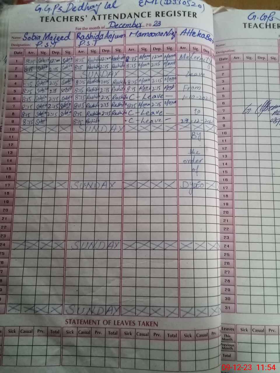 | Leave | Duty | Absent | Maternity | Medical | Ex- Pak |