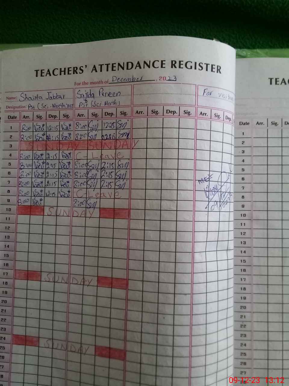 | CNIC | Full Name | Designation | R/C | Absence During Last Calender Month |