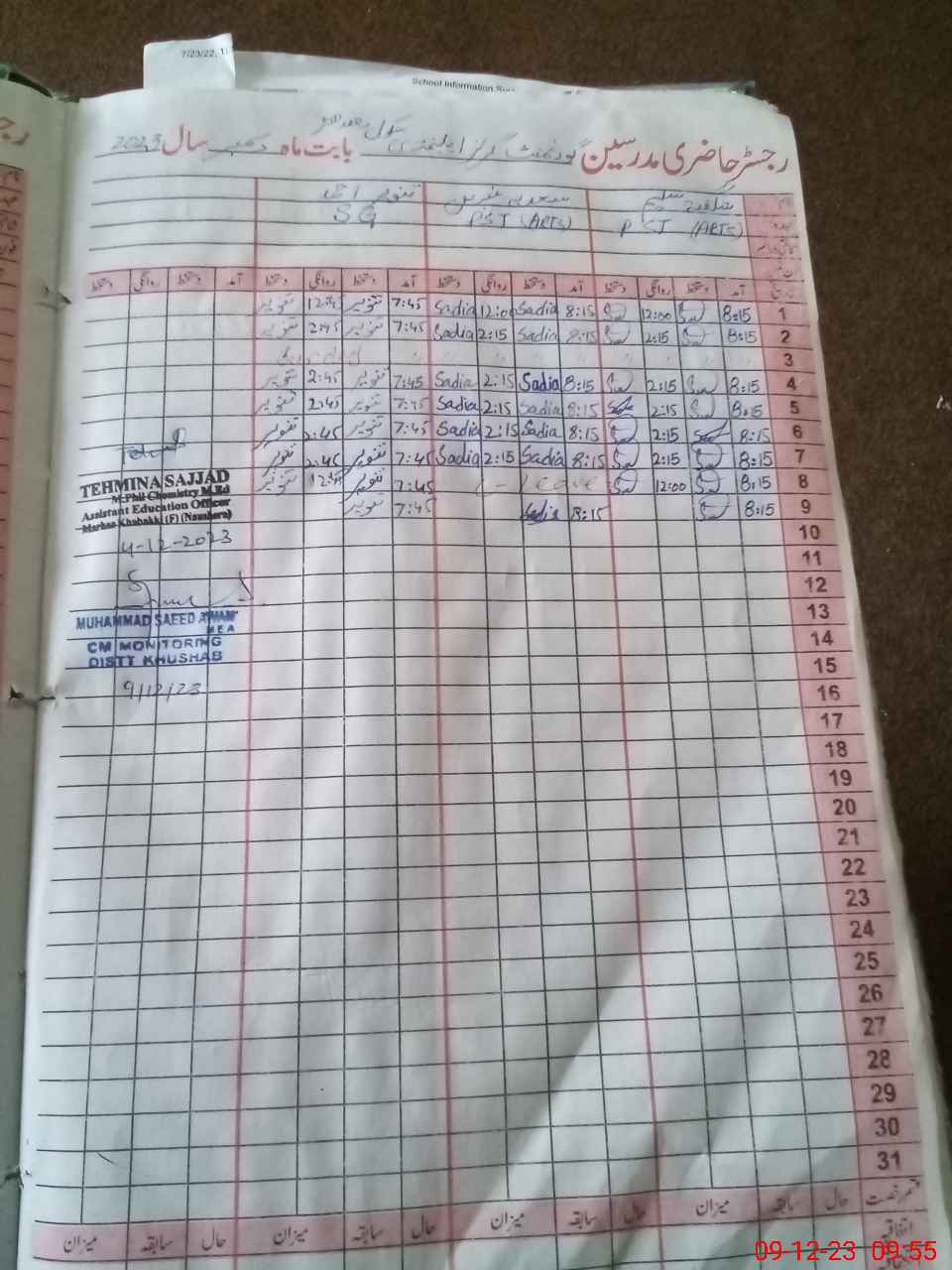 | District: KHUSHAB | Tehsil: NAUSHERA | Markaz: KHABAKI (FEMALE) | Level: Middle | |