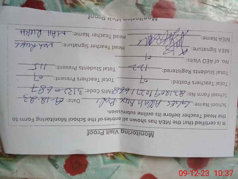 | Certified that this School was Inspected by the Undersigned MEA/DMO Today and the Information Stated Above is as Per Record. | |||||