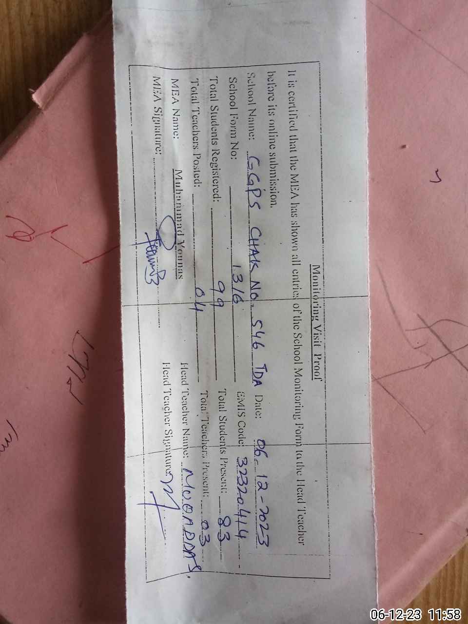| EMIS Code: 32320414 | Name of School: GGPS CHAK NO. 546 TDA | |||