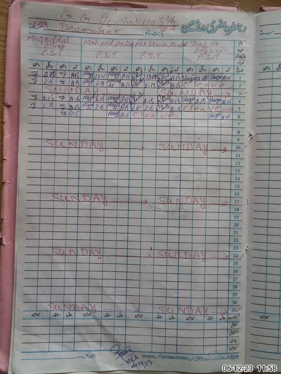 | Name: MU**** IS**** Designation: (School Headmaster's/Headmistress's) PST Phone/Cell Number: 03**** |