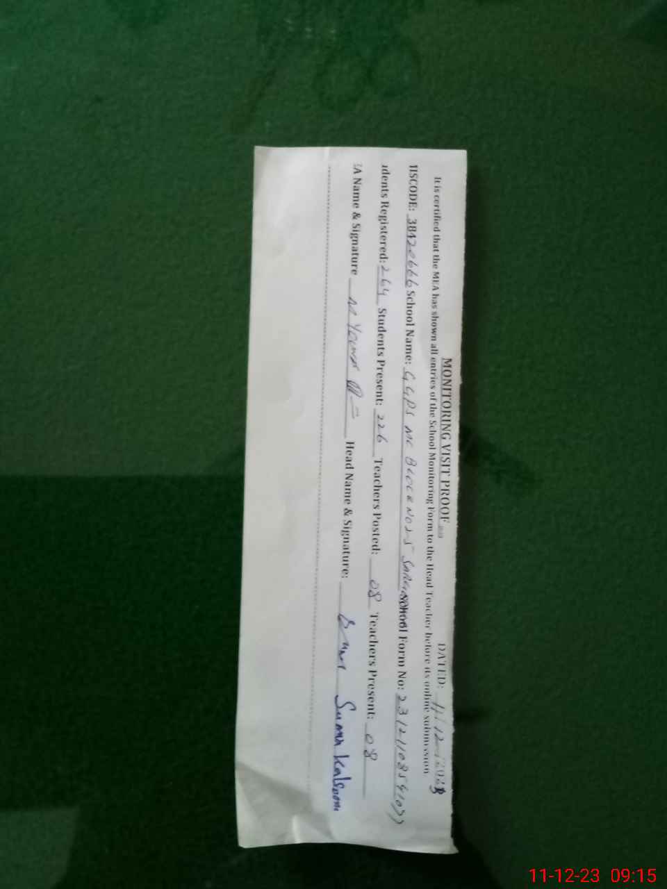 | EMIS Code: 38420666 | Name of School: GGPS MC BLOCK NO.25 SARGODHA | |||